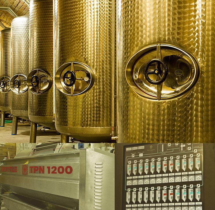 Pro výrobu vína používáme nejmodernější technologie, které je možné pořídit. Samozřejmostí je šetrné odstopkování hroznů, šetrné pneumatické lisování umožňující získat nejjakostnější šťávu bez obsahu negativních látek ze zrnek a slupek, řízené kvašení uchovávající výjimečné aroma vín, zrání a uložení vín v ochranné atmosféře apod.